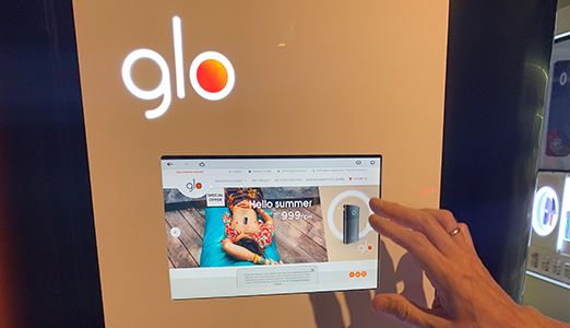 A BAT está ganhando interesse e novas vendas para o glo, em parte, ao reformular suas operações de quiosque para adicionar um novo e inovador canal direto com o consumidor. O novo canal tem uma boa relação custo-benefício, pois a BAT não precisa adicionar recursos de TI para implementar e gerenciar os tablets Samsung.